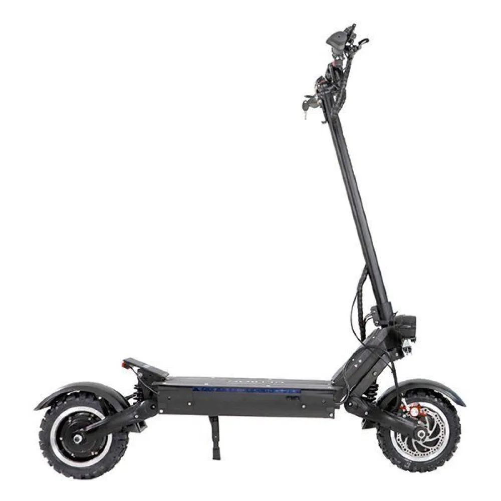 Особенности электросамоката заключаются в его мощности и безопасности пользования. Техника рассчитана на грузоподъемность до 150 кг. Мощность одного мотор-колеса составляет 3000Вт. Мягкость хода и маневренность обеспечены за счет оригинальных 11-дюймовых колес. Тестирование техники показало, что за 6 сек транспортное средство способно развить скорость до 85 км/час. Одной подзарядки АКБ хватает на 80 км/пути.