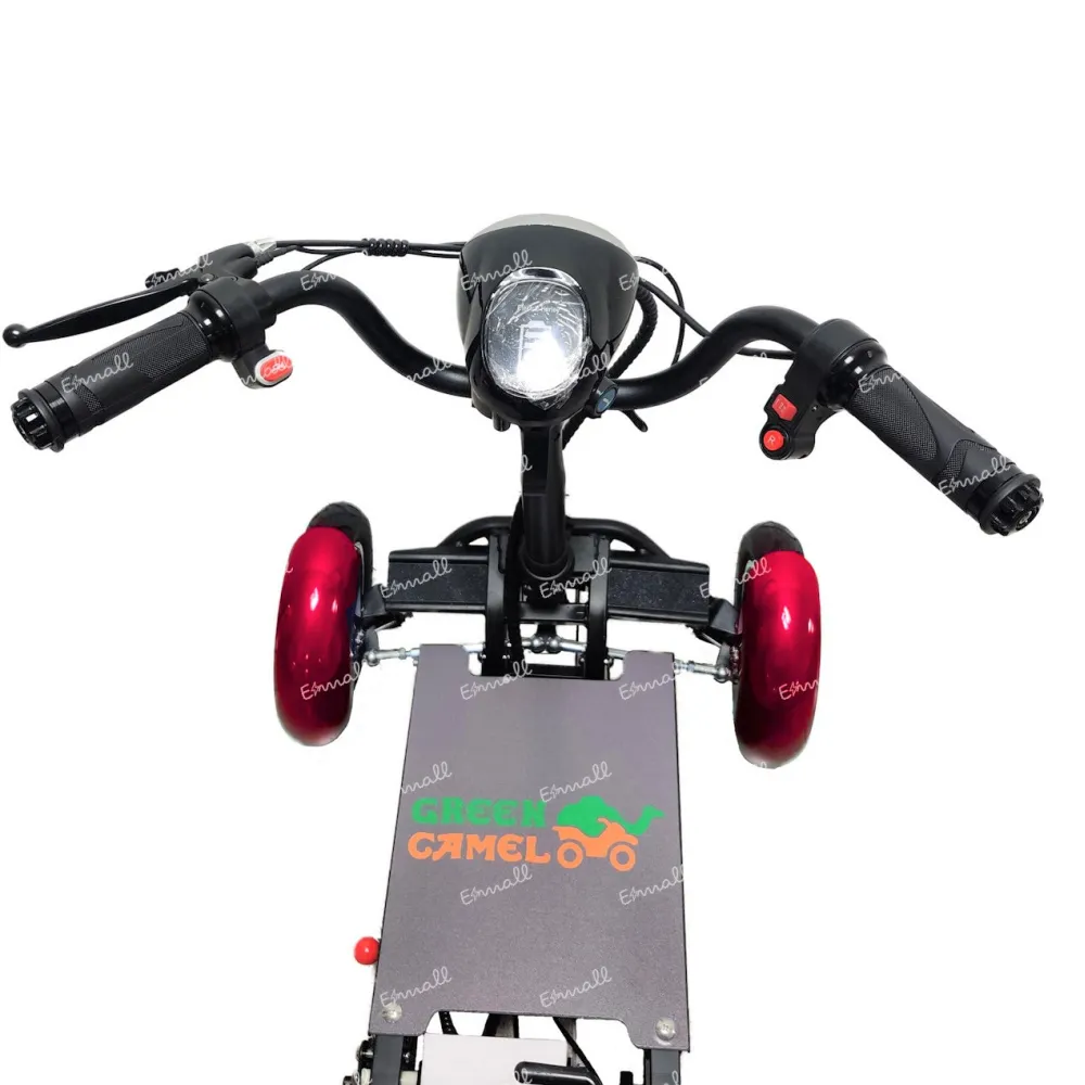 Электро-трицикла GreenCamel Кольт 501 удобен в использовании, собирается и становится в два раза меньше. В таком положении удобно катить на двух колесах за ручку. Удобен как небольшая сумка. При сборке посадочное место убирается.