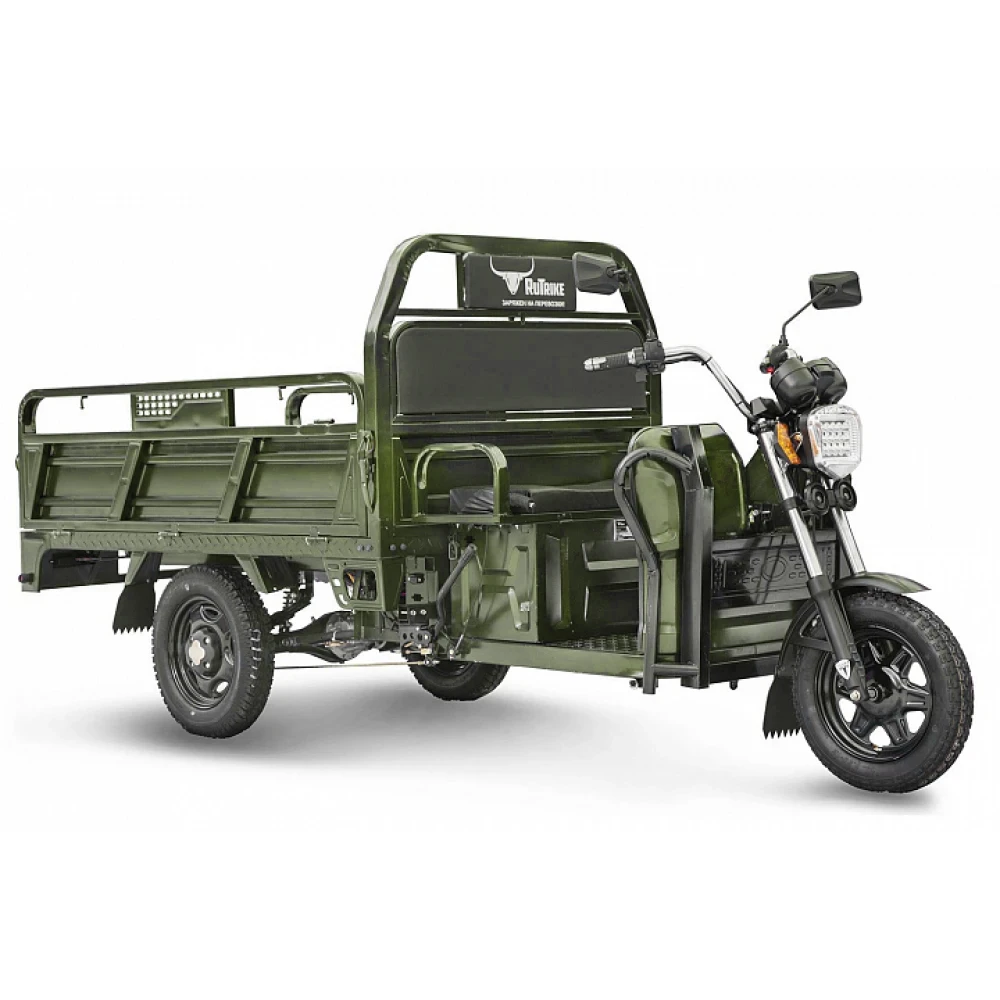 Грузовой электротрицикл Rutrike D4 1800 60V1200W зеленый – выглядит современно и круто. Модель предназначена для представителей коммерции и частного сектора. Наличие вместительно кузова позволяет перевозить до 10 пассажиров одновременно, использовать пространство для транспортировки груза массой до 1т.