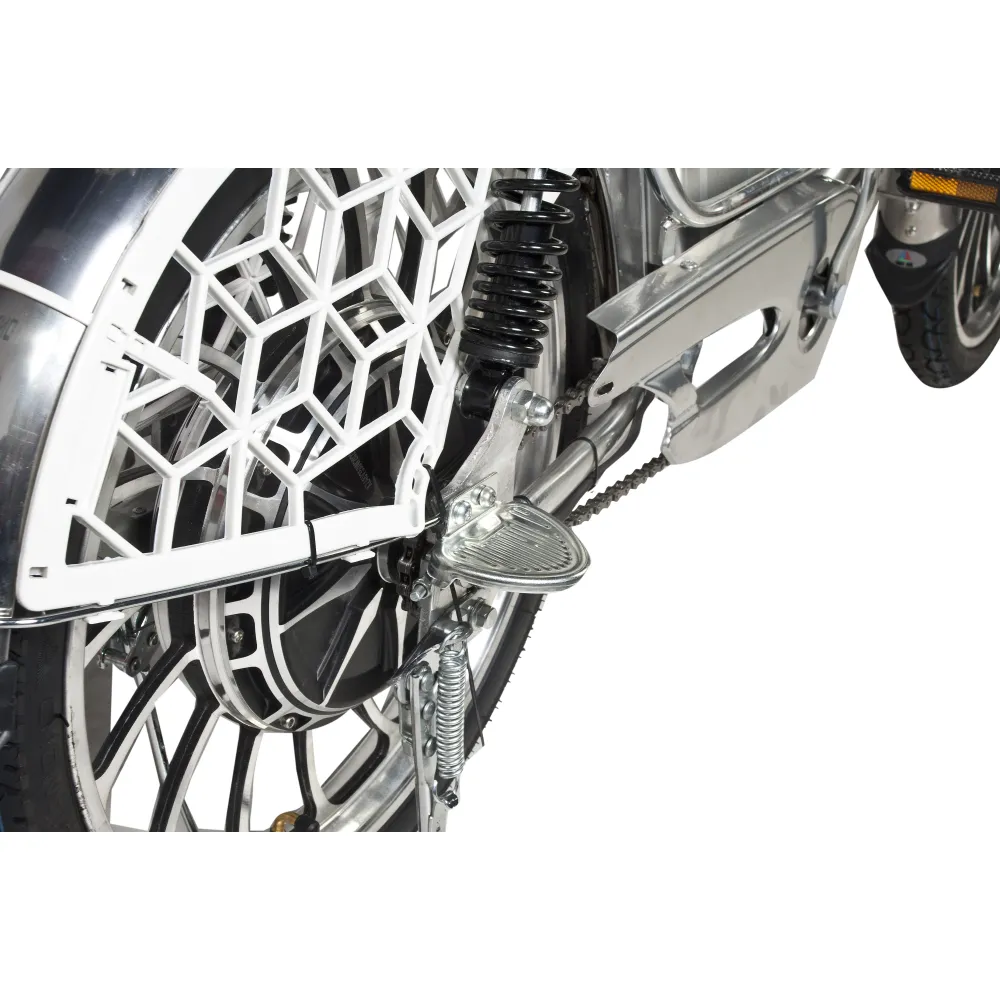 С легкостью разгонять технику до максимальных скоростных показателей 40 км/час позволяет электромотор мощностью 500 Вт, который приводится в действие благодаря емкой АКБ 13000 мАч. Одного заряде хватит на преодоление расстояния до 50 км без дополнительной подзарядки. На электровелосипеде установлена современная тормозная система Promax DISC, обеспечивающая быструю остановку. Ямы и кочки беспроблемно смягчаются фирменными амортизаторами.