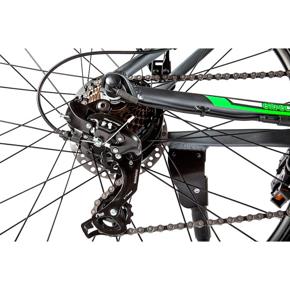 Велогибрид Eltreco XT 750 представляет собой доработанную и улучшенную версию модели ХТ 700. Производители оснастили велосипед  более емким аккумулятором, который обеспечивает запас хода до 50 километров на одном заряде батареи. Расположен аккумулятор под рамой и легко снимается для подзарядки в домашних условиях или офисе. Компактный, но мощный двигатель позволяет развивать скорость до 35 км/час. Такие показатели гарантируют комфортное и мобильное передвижение по городу в течение всего дня. В темное время суток безопасность поездки обеспечивает яркая передняя фара, которая уверенно освещает путь и делает велогибрид заметным для других участников движения. Надежные тормозные колодки с износостойким керамическим покрытием способны быстро остановить транспортное средство даже в экстренной ситуации. Рама выполнена из легкого и прочного алюминиевого сплава и выдерживает нагрузку до 100 килограммов. Пользователи оценят эргономичное сиденье из искусственной кожи и удобные ручки руля, обеспечивающие комфортное положение рук. Велогибрид Eltreco XT 750 отличается стильным и современным дизайном, а его эксплуатационные характеристики позволяют одинаково эффективно использовать его как для поездок по городу, так и для увлекательных загородных велопрогулок.